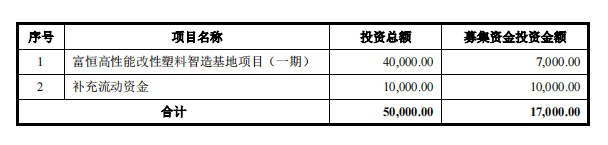 本次公司擬公開發(fā)行人民幣普通股不超過2280萬股,募集資金1.7億元,用于建設(shè)富恒高性能改性塑料智造基地項(xiàng)目(一期)等。