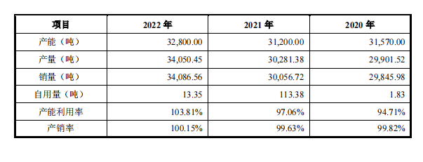 公司去年產(chǎn)能約為3.28萬噸,產(chǎn)能利用率還比較高,去年為103.81%。