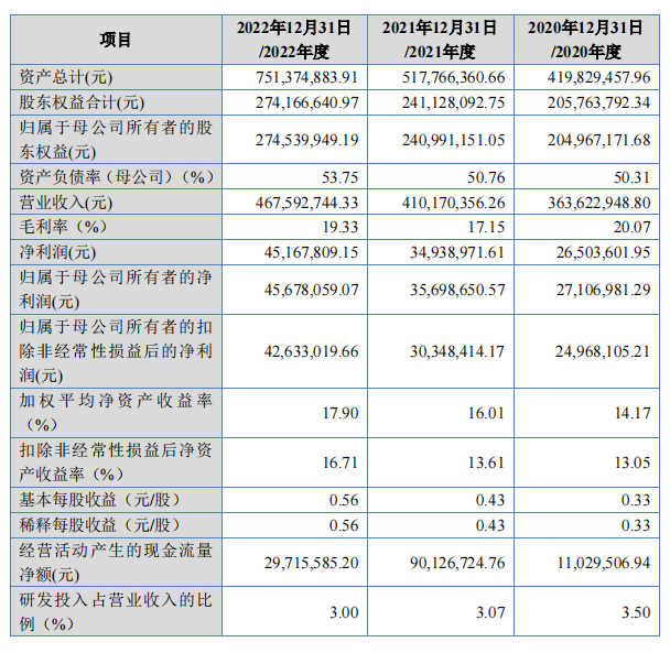 2022年度,公司實(shí)現(xiàn)營(yíng)業(yè)收入4.68億元,同比增長(zhǎng)14%,實(shí)現(xiàn)凈利潤(rùn)4568萬元,同比增長(zhǎng)28%。其中外銷占比約為9.98%。此外公司應(yīng)收款較高為2.88億(2022)。