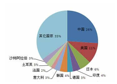 2013年全球電線電纜產(chǎn)值占比 單位:%